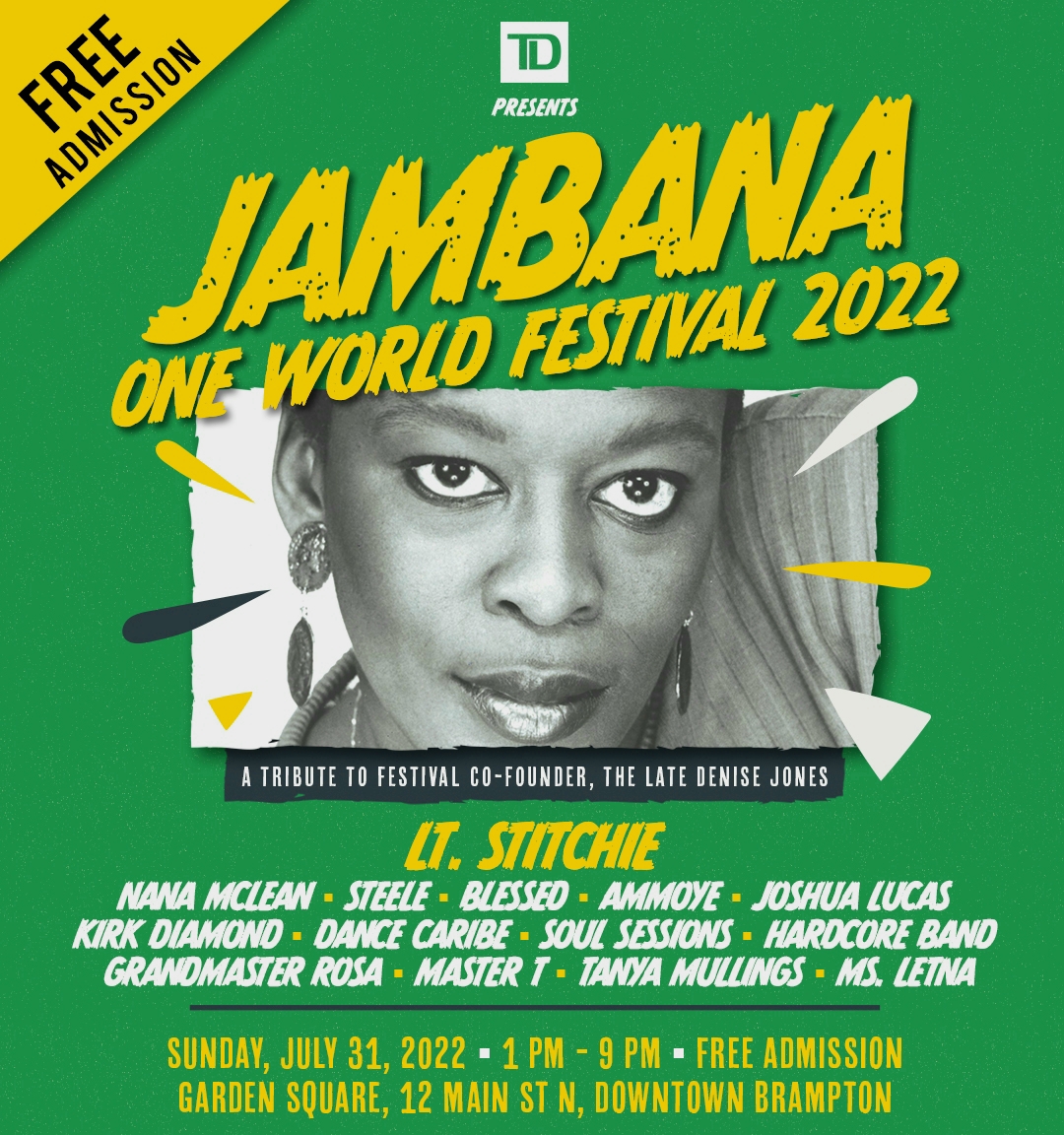 One of the main features at this year’s festival, will be the posthumous honoring of Denise Jones, one of the co-founders of JAMBANA, as the next inductee to the Brampton Arts Walk of Fame. Denise passed away in 2020 after a battle with brain cancer.